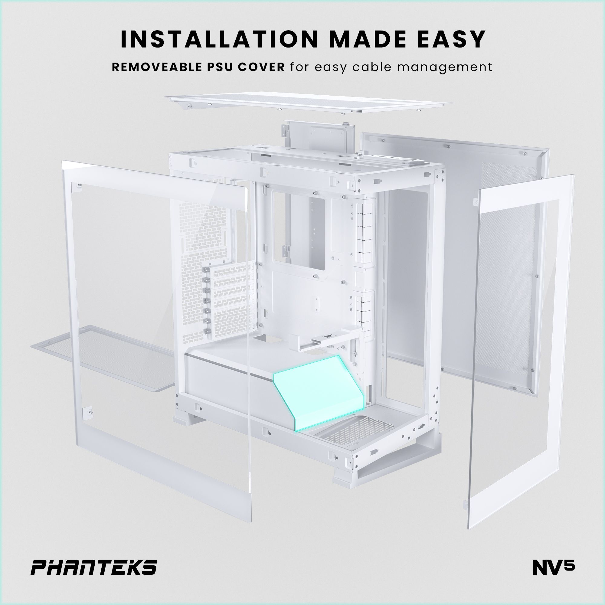 | Phanteks NV5, Mid-Tower Chassis, Integrated D/A-RGB, Tempered Glass (White) |