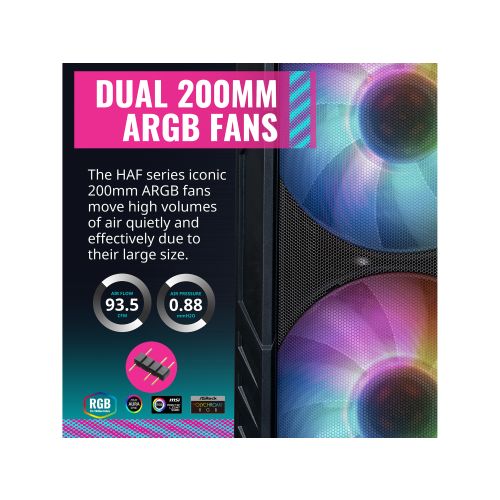 Cooler Master HAF 500 Black ARGB ATX mid Tower, Tempered Glass, front USB 2.0 & 3.0 (no DVD bay)