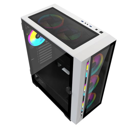 APEVIA Destiny Pro White RGB, Tempered Glass Front & Side Window, USB 2.0 & 3.0 (no DVD bay)