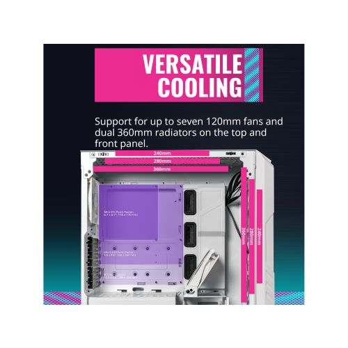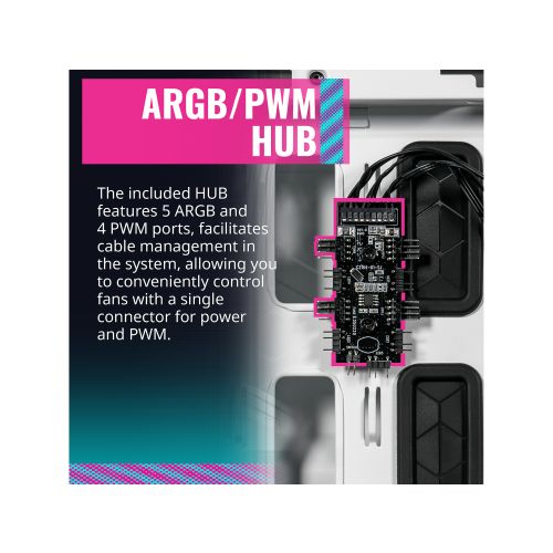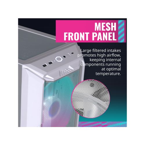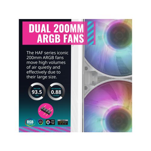 Cooler Master HAF 500 White ARGB ATX mid Tower, Tempered Glass, front USB 2.0 & 3.0 (no DVD bay)